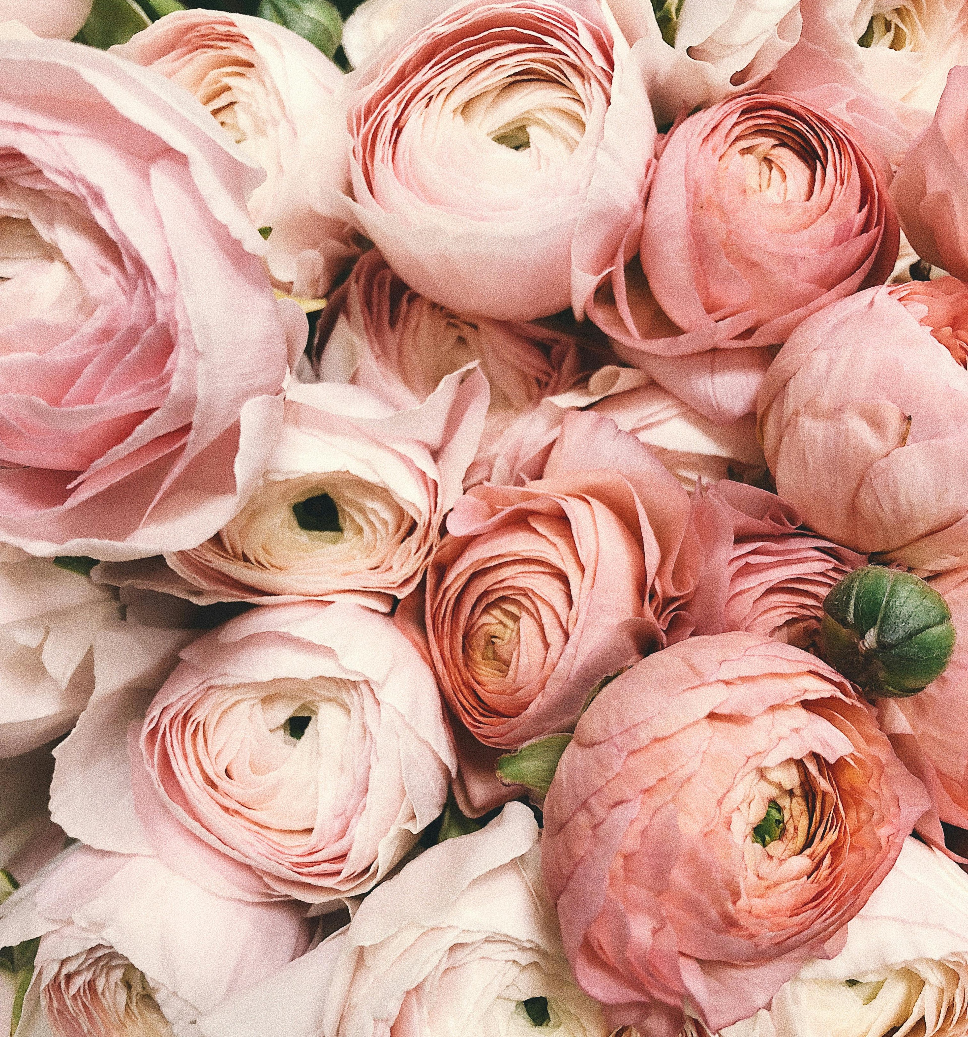 Soft neutrals like ivory, white, blush pink, and navy blue.